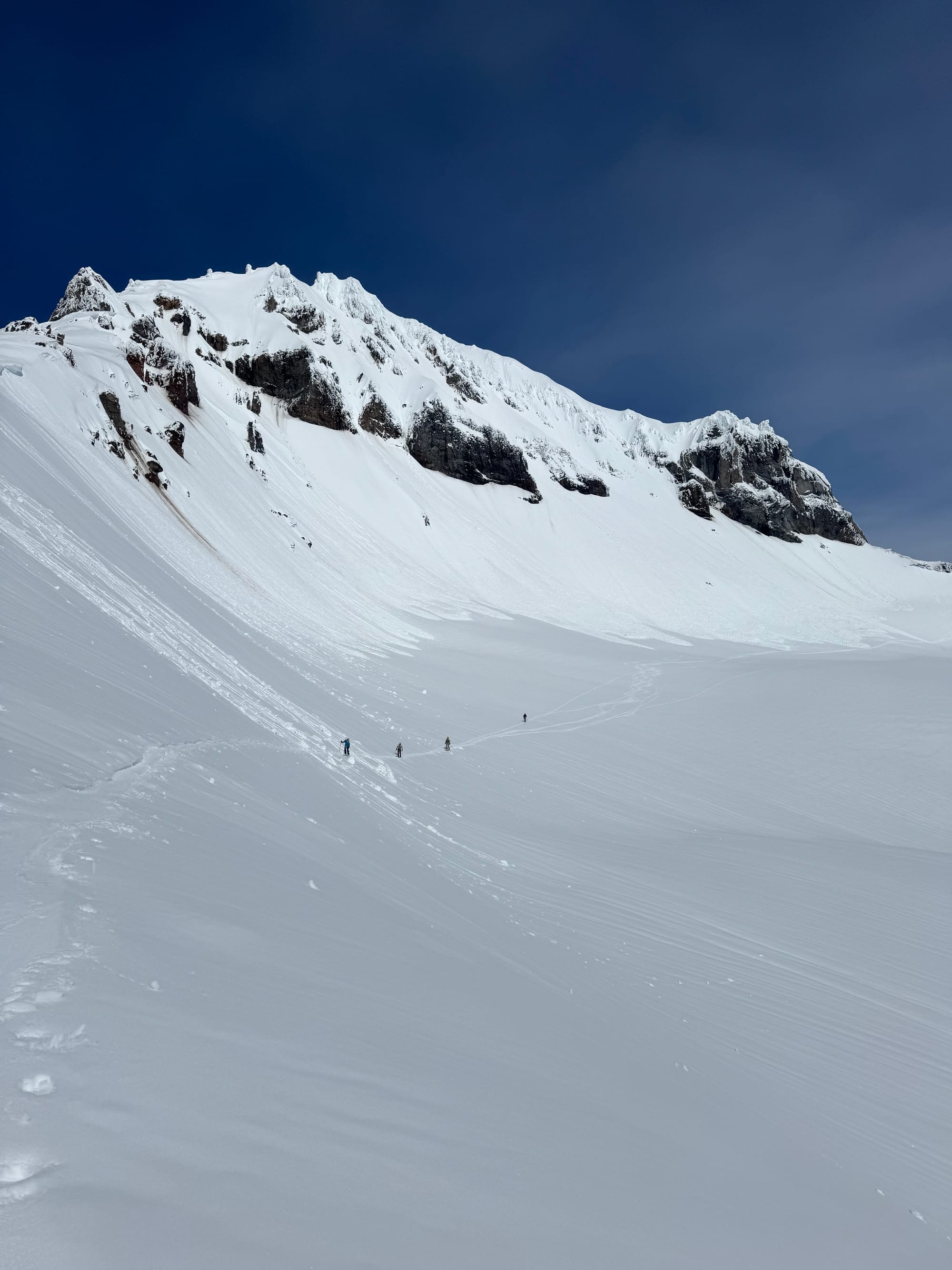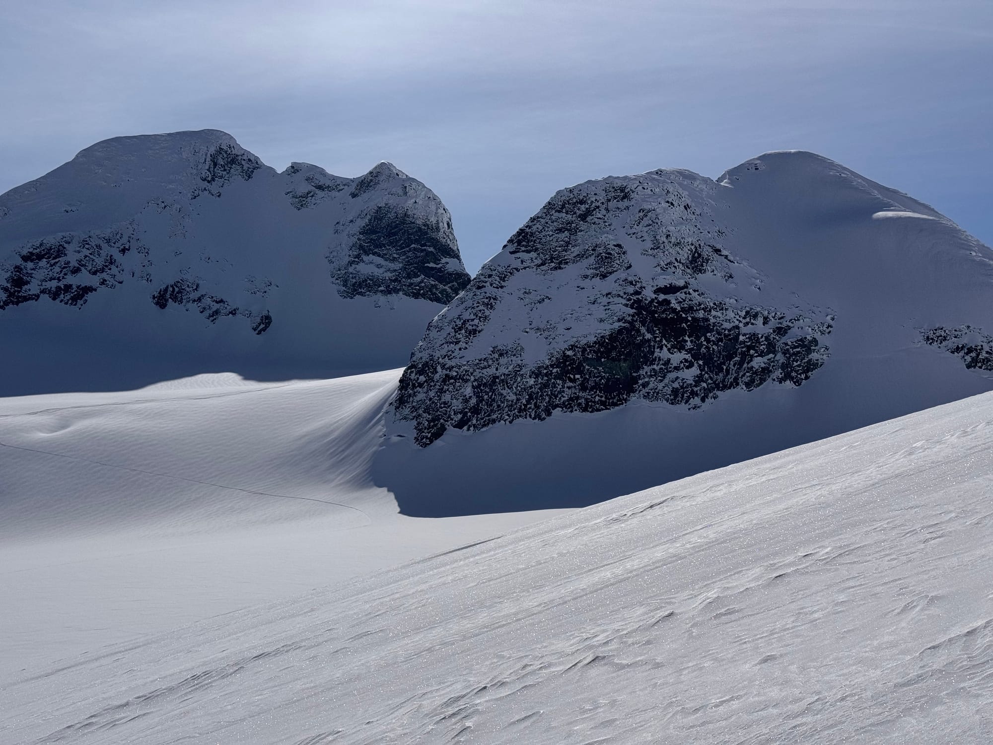 - Bad timing - use morning freezes to travel with care (ski crampons are key) and mid-day softening for the skiing.