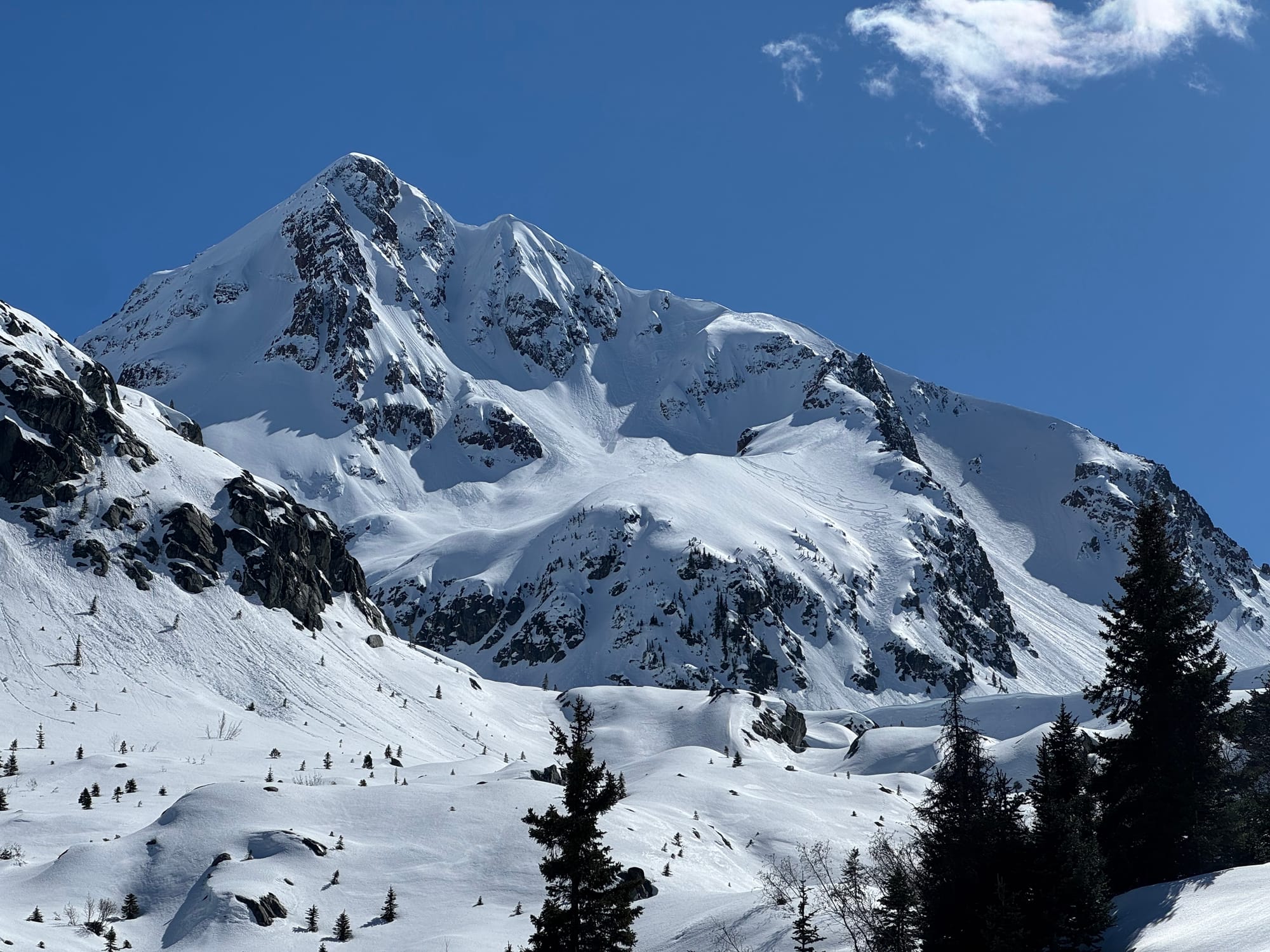 In most places we have a robust melt freeze crust that makes for a firm surface in the morning and soft conditions in the afternoon. In very high, sheltered north aspects, you may still find some softer powder among windslab and breakable conditions.