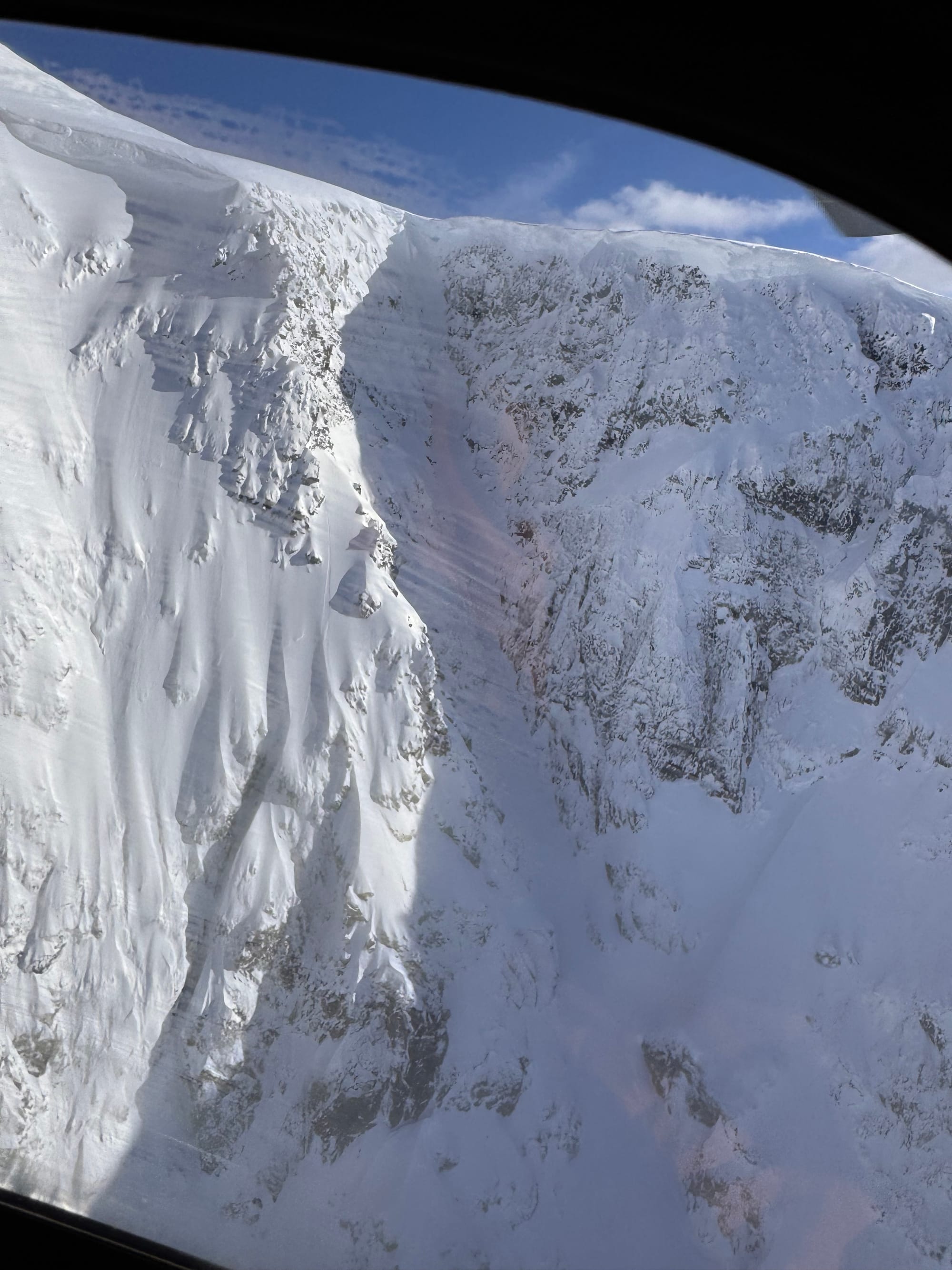 It’s been a pretty uneventful week for the south coast from an avalanche perspective. There have been some windslabs but the main event has been cornices falling. They’re still juicy from the atmospheric river and continue to build as new snow falls and wind blows. One of note was the cornice on the north face of Tremor, a large chunk of which smoked the regular skintrack on the Spearhead Traverse and came dangerously close to a campsite on the glacier.