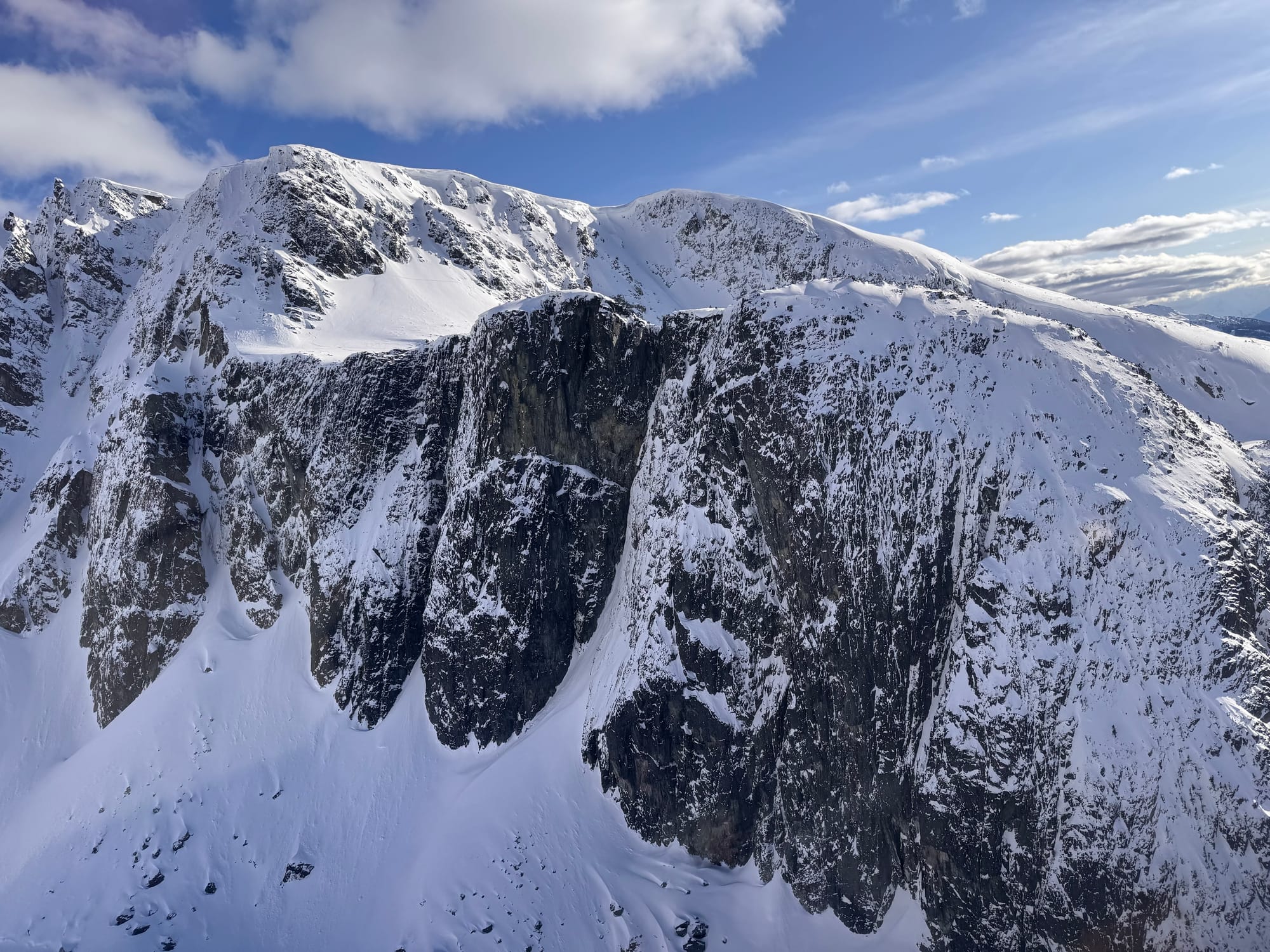 It’s been a pretty uneventful week for the south coast from an avalanche perspective. There have been some windslabs but the main event has been cornices falling. They’re still juicy from the atmospheric river and continue to build as new snow falls and wind blows. One of note was the cornice on the north face of Tremor, a large chunk of which smoked the regular skintrack on the Spearhead Traverse and came dangerously close to a campsite on the glacier.