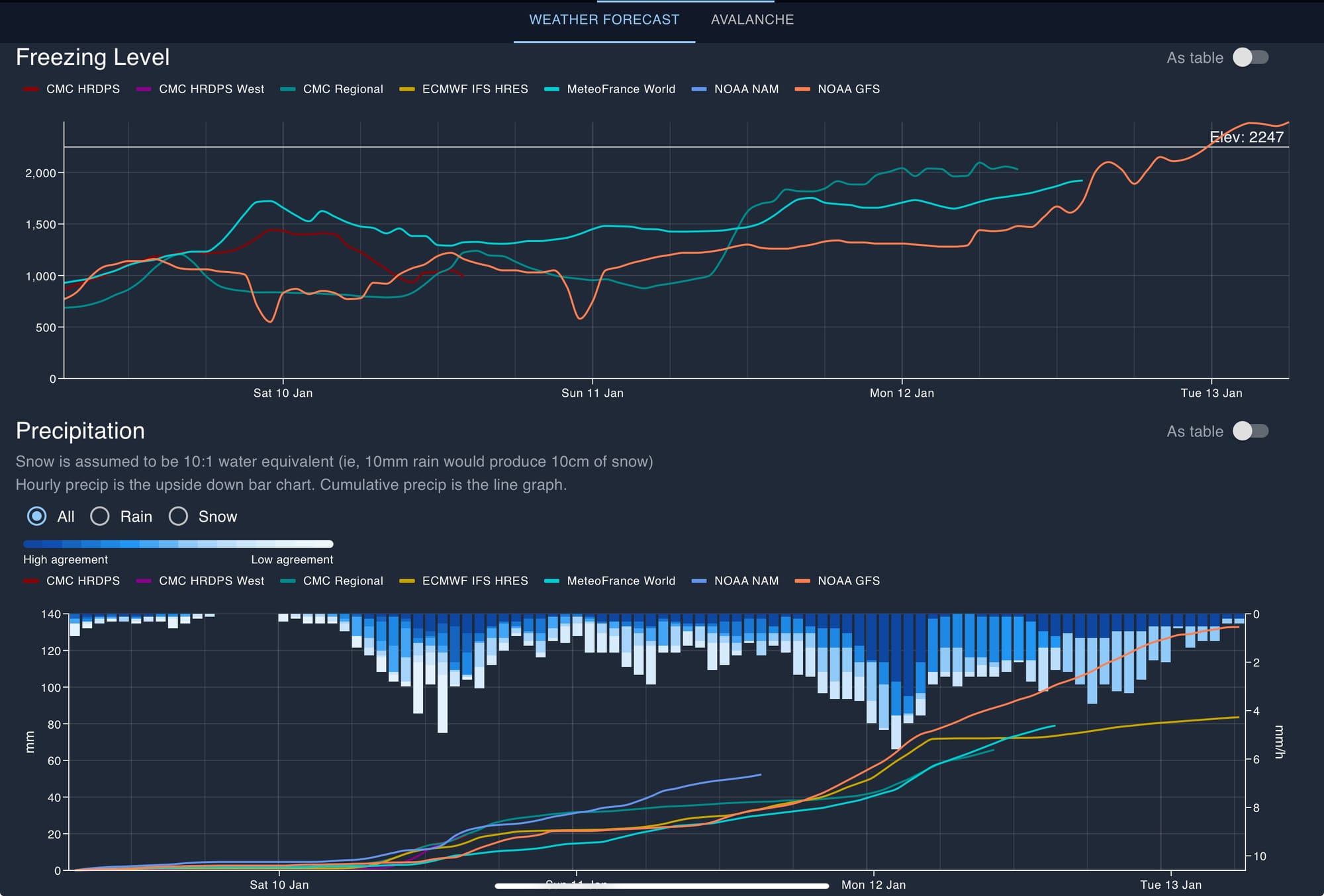 We also just found out about a sweet new forecast tool - built locally, it’s Alpine Conditions. Especially valuable is the ensemble presentation and our favourite, the compare locations feature!