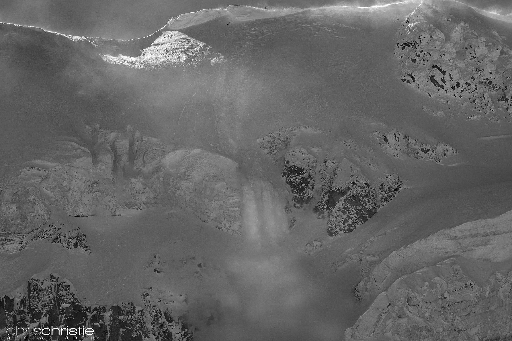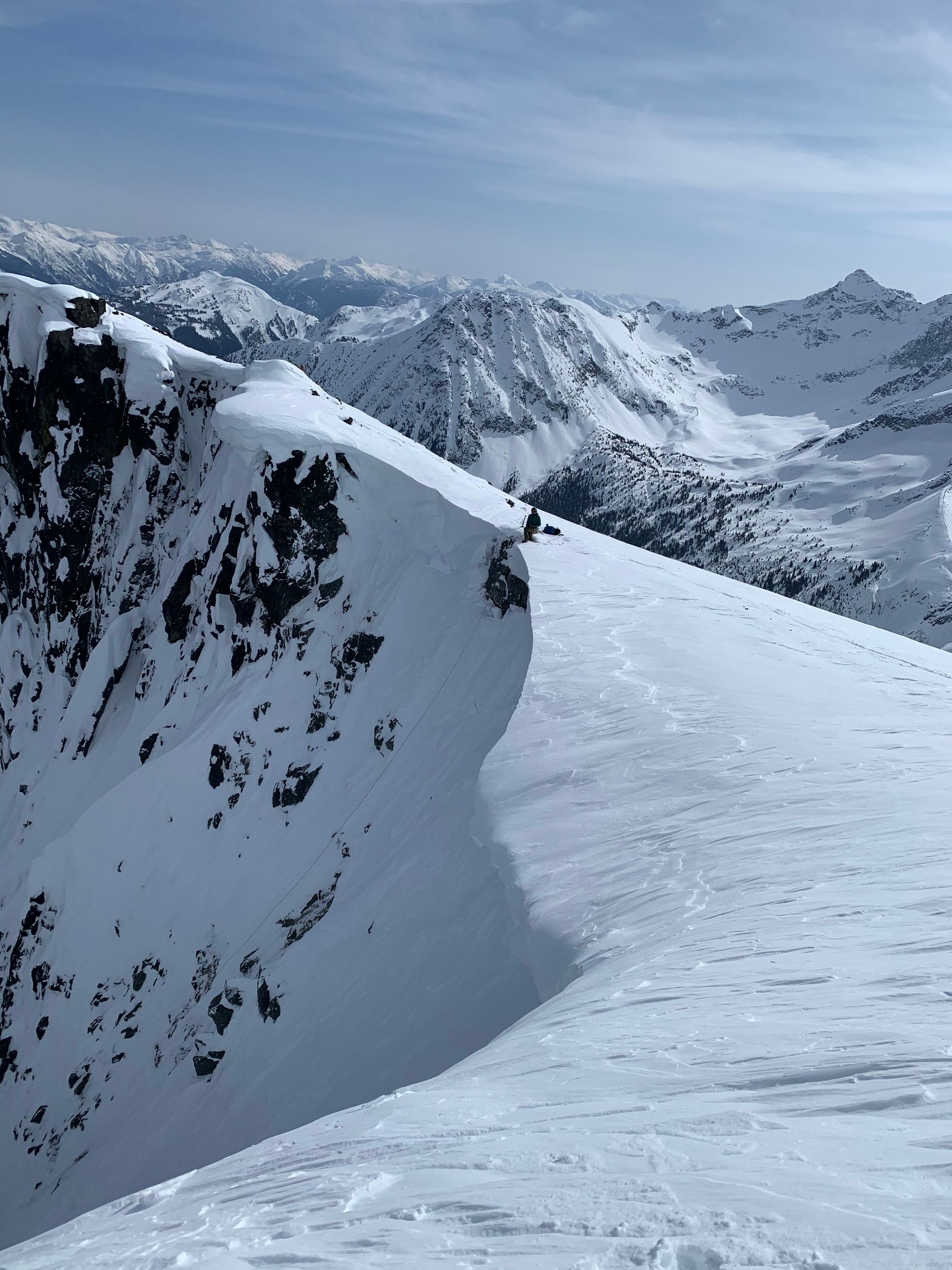 Largely we’ve taken advantage of these conditions to get into bigger steep terrain on Nch’Kay, in the Tantalus, the Wedgemount Group, and on Mt. Currie. In general we’ve found that steep lines with big cornices were generally a bit bombed out as those cornices have started failing. Lines without cornice overhead have held much better snow! East facing aspects at mid-elevation have started developing a melt freeze crust while west facing aspects are firmer and more wind affected. Luckily sheltered north aspects are holding pretty amazing powder still!
