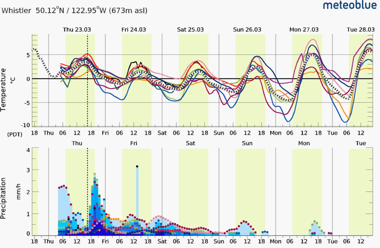 - Will the warmth and sun negatively affect ski quality on north faces? It’s getting quite warm already and while our snowpack will continue to grow for a bit, things are shifting. Hopefully ski quality stays decent for powder snow a few more weeks!