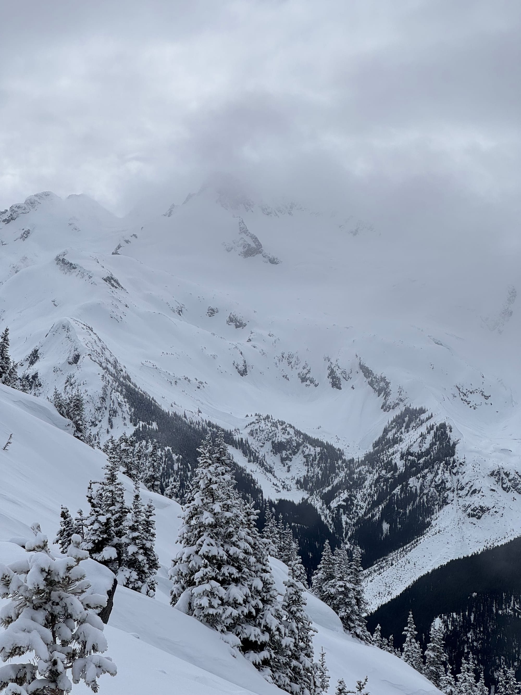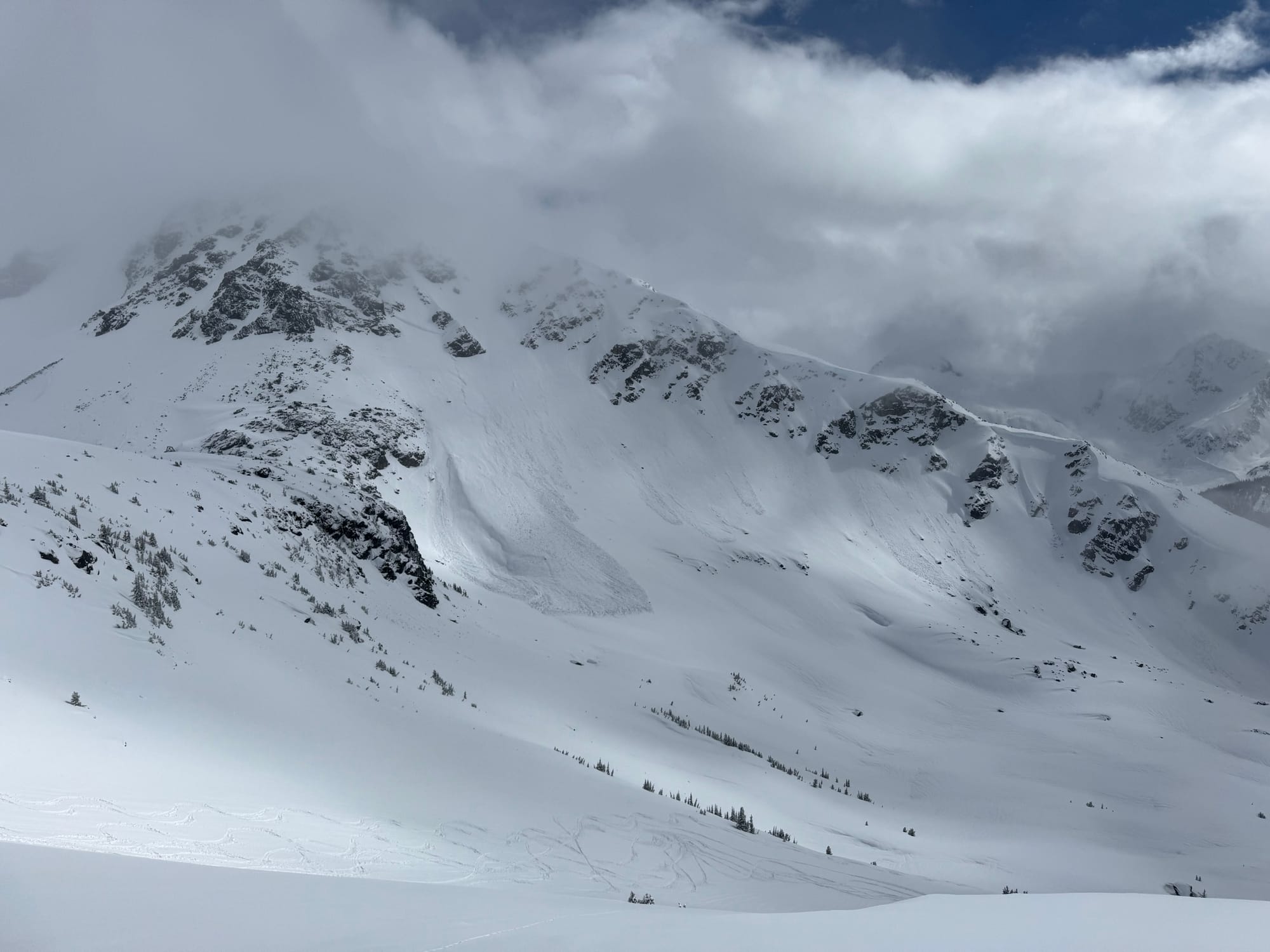 Avalanche activity seemed to taper off over the weekend however people were still generally skiing conservatively. A few of the common performers had slid giving opportunities to get into steeper terrain but it definitely wasn’t a green light. By Monday, the snow had mostly turned to rain and Tuesday/Wednesday brought freezing levels that touched ridgetop throughout the corridor. Precip totals were much higher in Squamish (~40+mm) compared to the dry side of the Duffey (~15mm) but we saw a large natural avalanche cycle throughout the corridor. Chute 51 (Blowdown) hit the Duffey Lake Road Tuesday evening and has kept it closed for several days for cleanup. On Thursday, some clearing allowed us to see into Garibaldi Park and the very large avalanches out on Decker, Fissile, Iago, and Fitzsimmons. There were also numerous sz 1-2 avalanches on smaller features like moraines and steep cliffs throughout the park. These were a mix of wind slab and wet slab avalanches, with some potentially stepping down to the PWL. Several may have been cornice triggered but many appeared to have been triggered by rain.