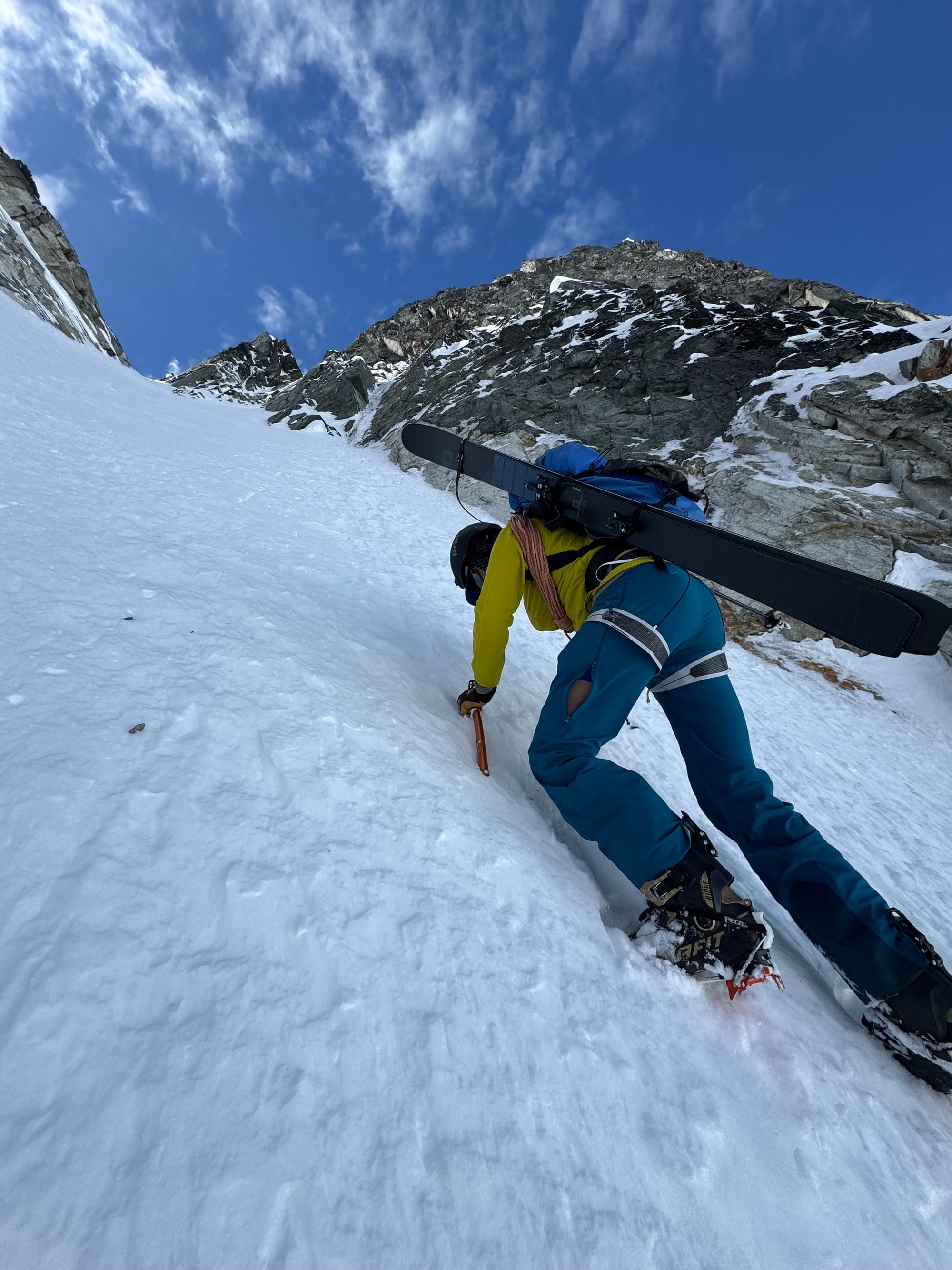 The skiing is good right now if you time it right. Mornings are firm, fast travel, and ski crampons are critical. Afternoon can be awesome corn skiing. And if you time it really well with snowfall, you might still find some chalky pow on sheltered polar aspects!