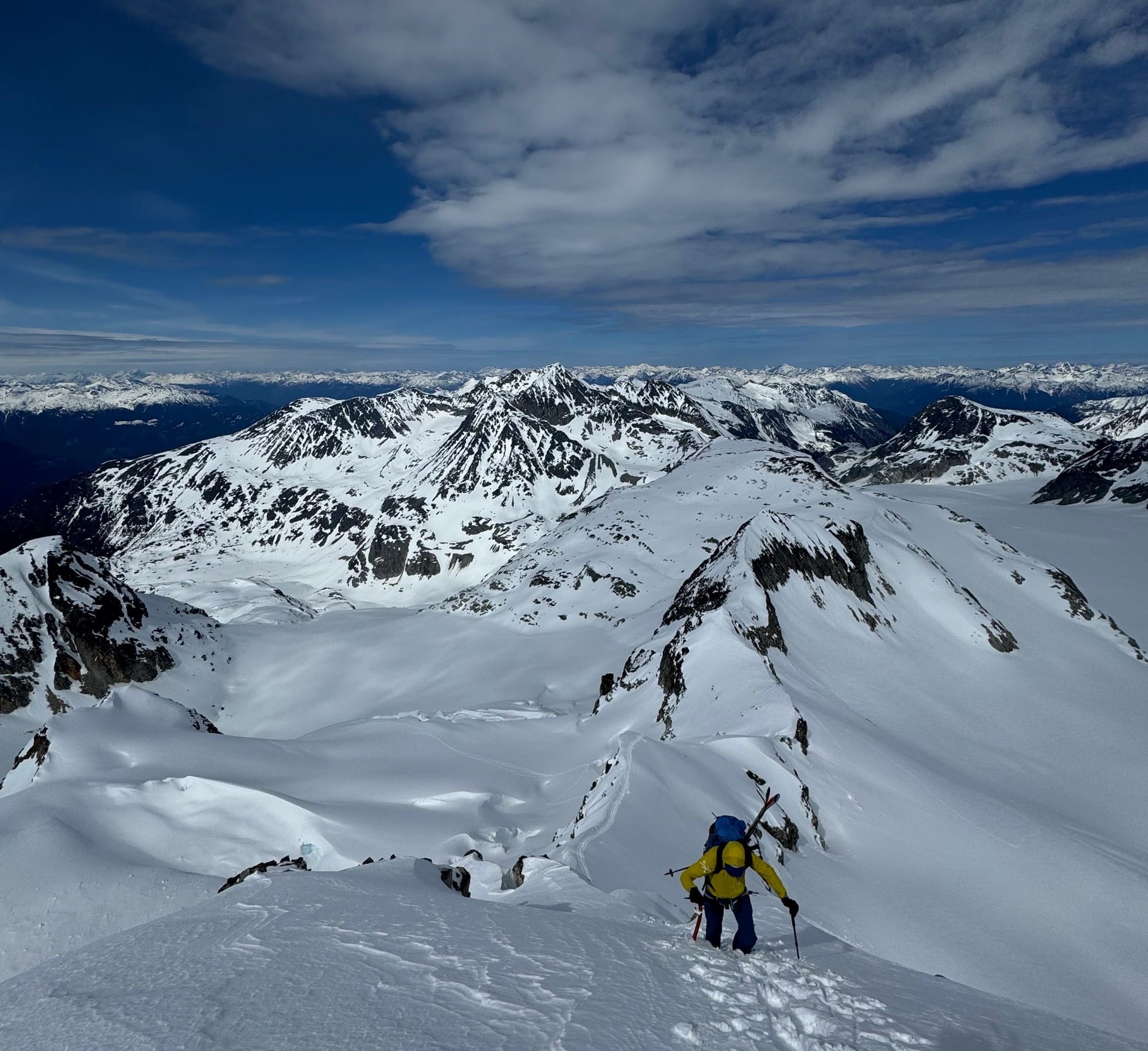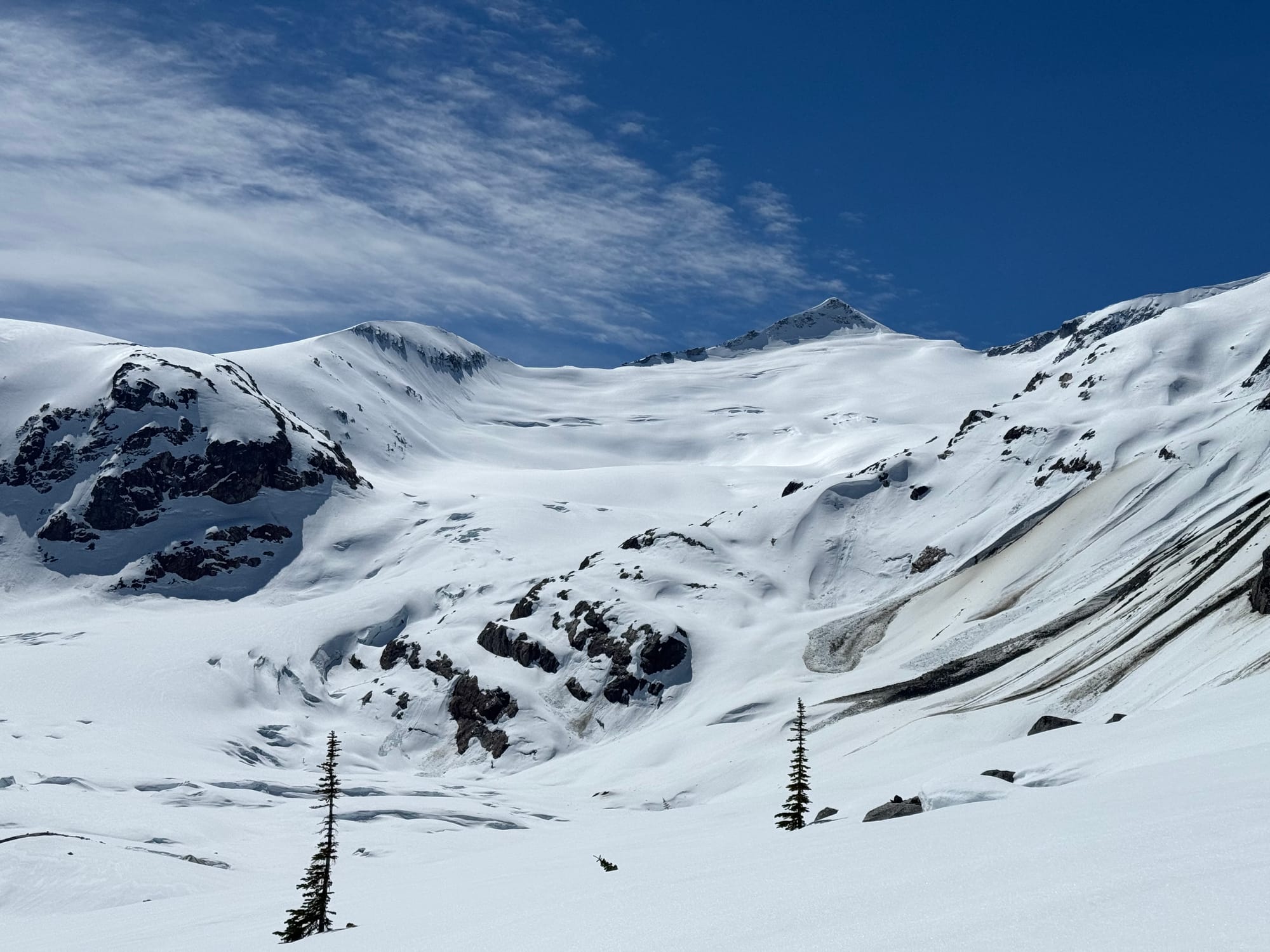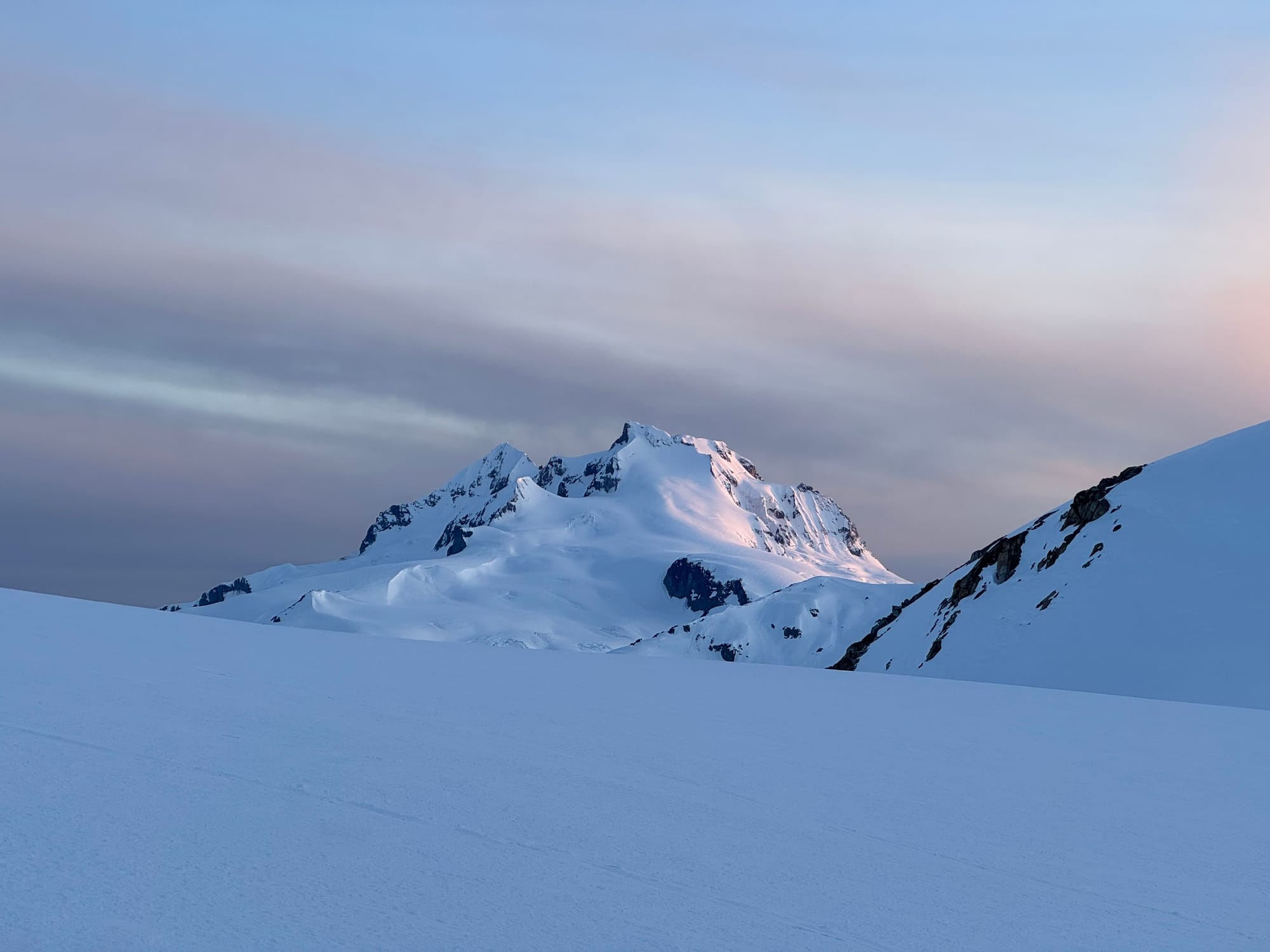 The snowpack is currently full spring diurnal with melt during the day and cold freezes at night. Watching for overnight freezes is critical. Freezing levels have actually been surprisingly low overnight. This makes for good crust recovery and not as sloppy conditions during the day. At some point soon though we will see those overnight freezes start to disappear and transition more to a summer snowpack. We’ve had a few pulses of precipitation but in general it’s been high pressure. We had good timing with one of these small storms and catching some good skiing up high in the Wedgemount Group.