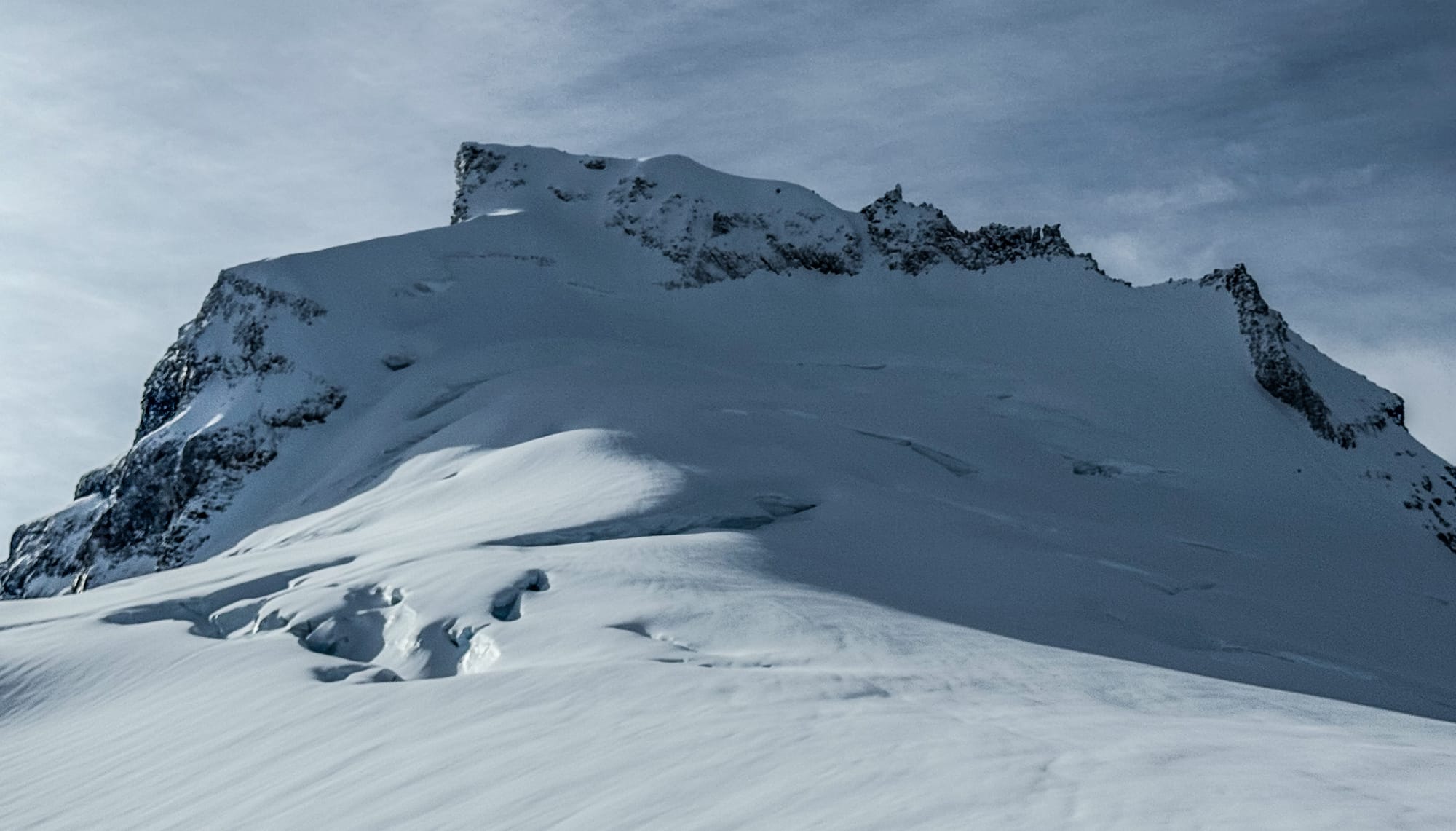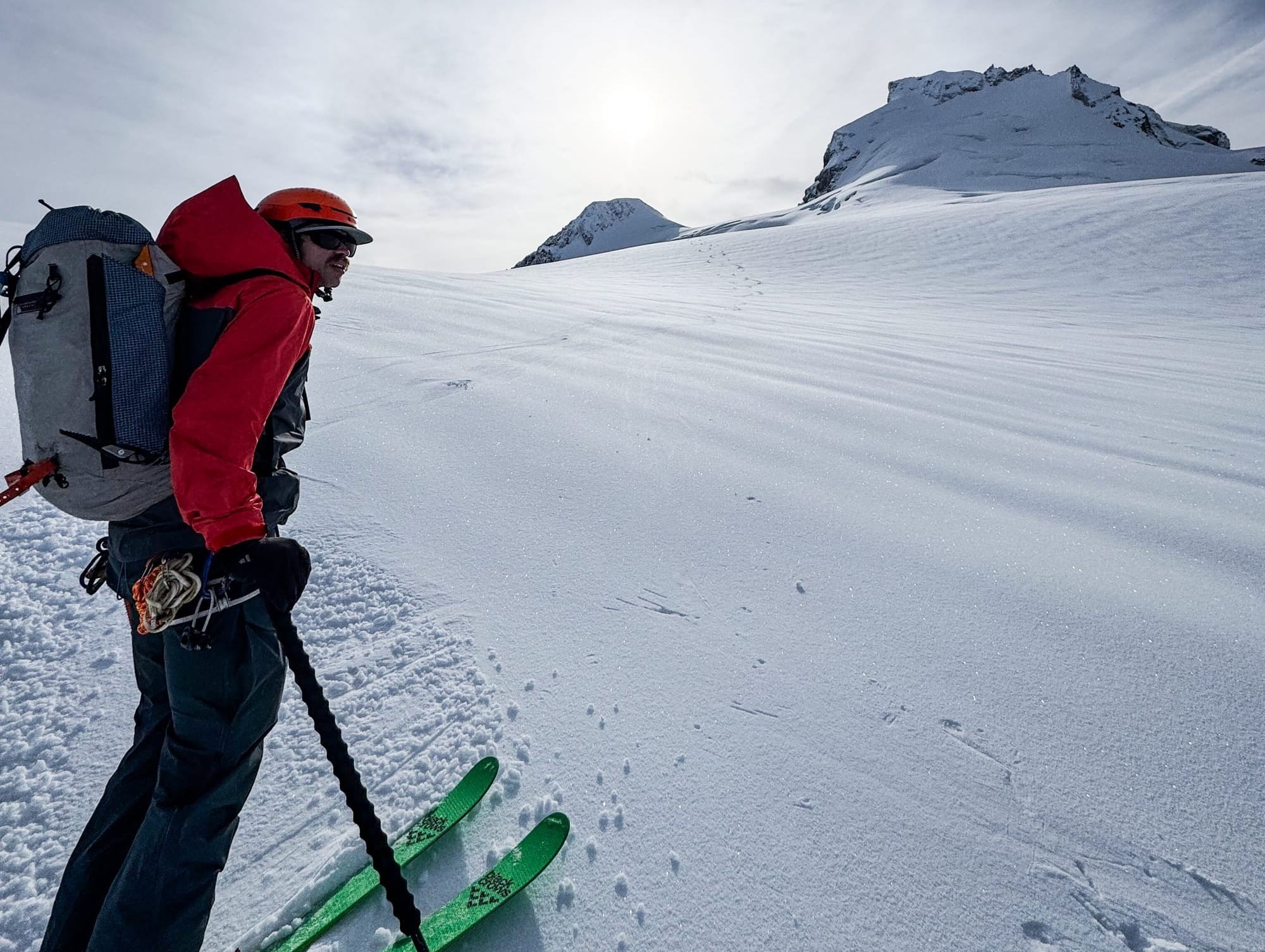 One thing of note is that the normal bergshrund on the NE Face of Garibaldi seems to have disappeared. It’s usually quite large this time of year and while there’s some big crevasses below, the shrund isn’t there.