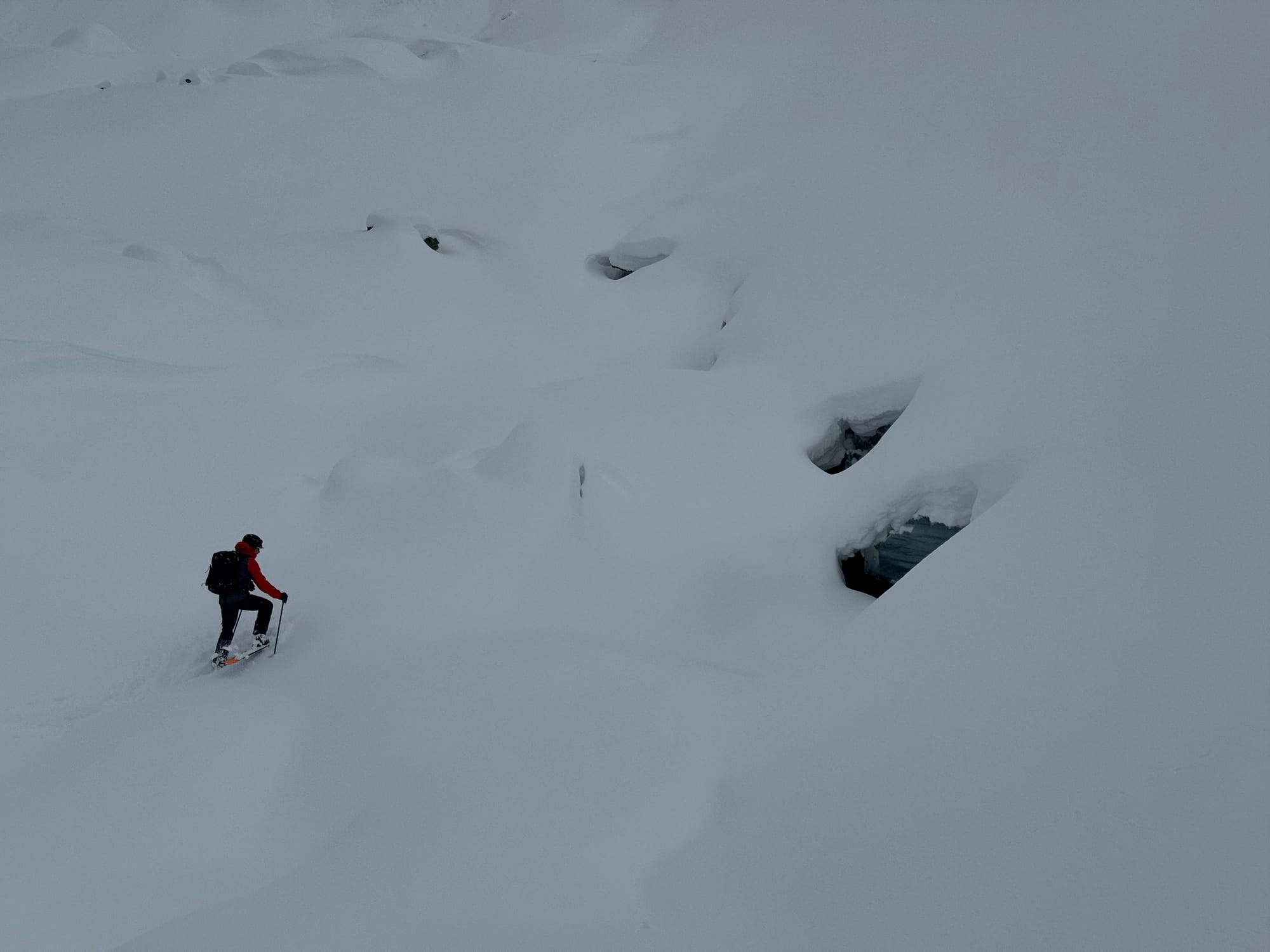 We’ve only had a few days again this week - all in the Squamish to Whistler corridor. In terms of access to skiable snow at that magic 1400m elevation, the logging roads around Squamish are pretty good. It’s also a balance of enough snow for skiing closer to the Coast and colder temps further inland. Once you’re up high, getting into features that hold snow is critical. The Metal Dome glacier, while still showing lots of open crevasses, had close to 1.5m of snow. Similar elevations on other aspects might be 50cm to bare depending on wind stripping!